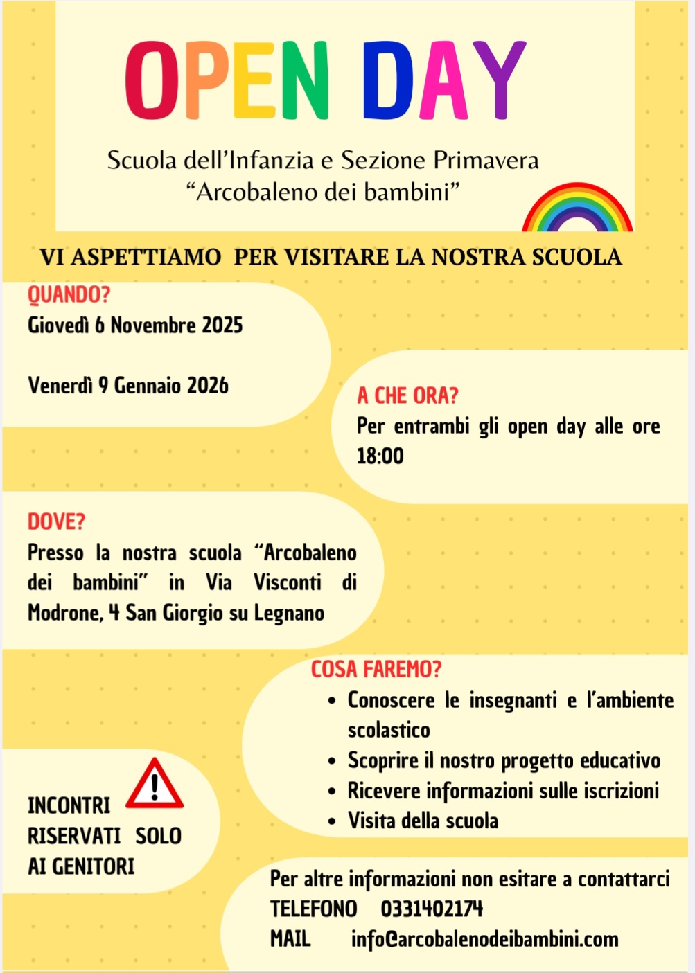 Il prossimo 26 novembre, a partire dalle ore 17, si svolgerà, presso la sede della scuola dell’infanzia “Arcobaleno dei bambini” in Via Visconti di Modrone 4